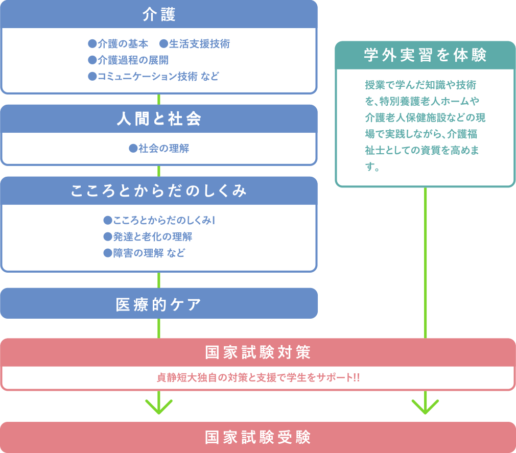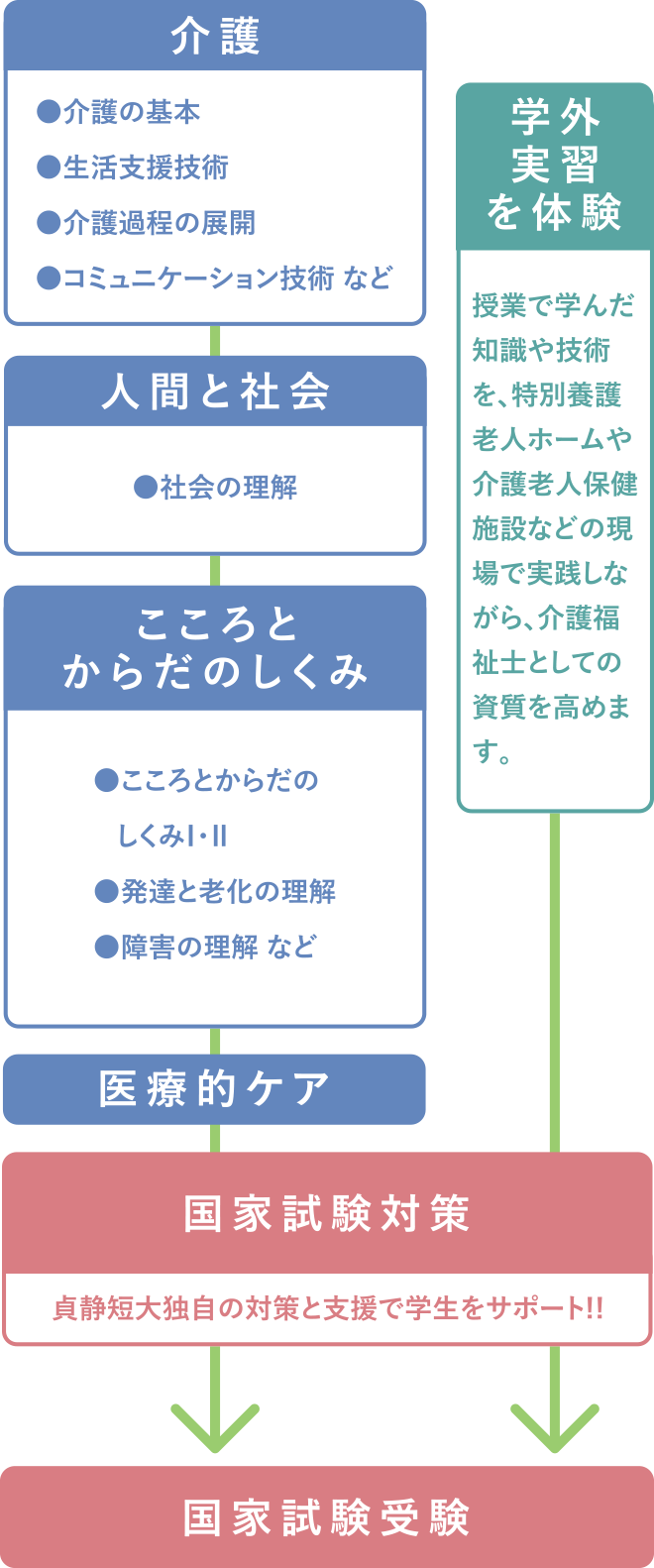 充実した内容の実習を行い、より質の高い介護福祉士をめざすことができます。